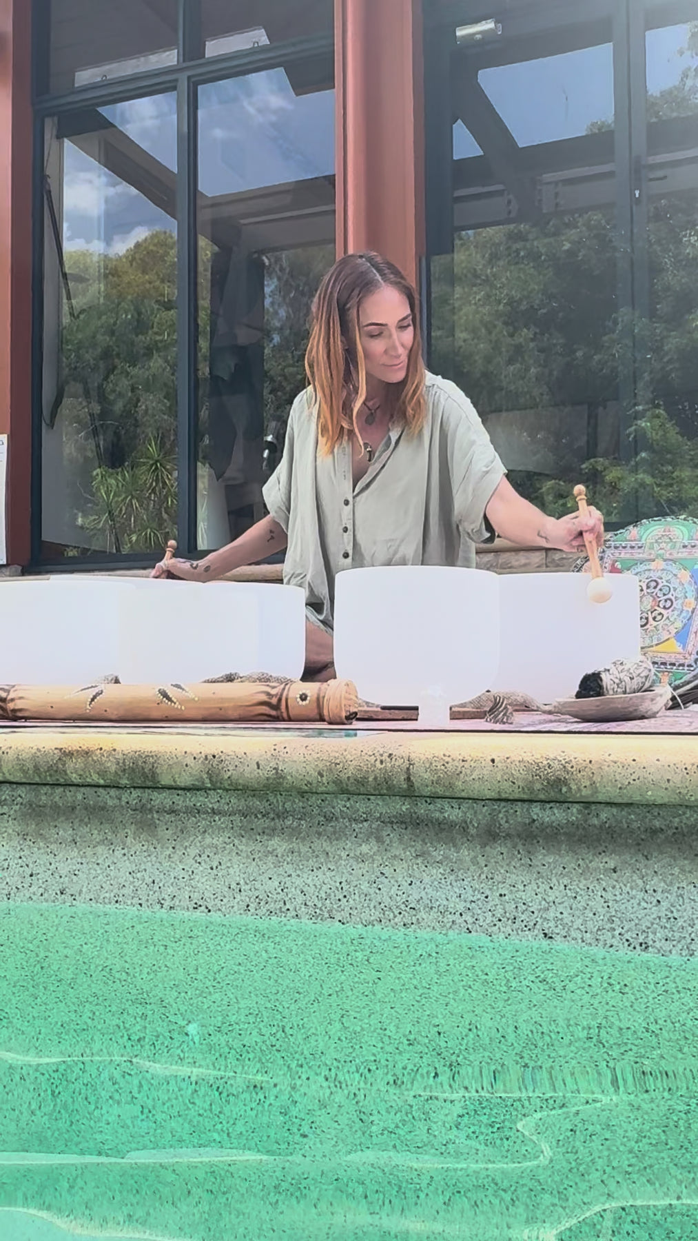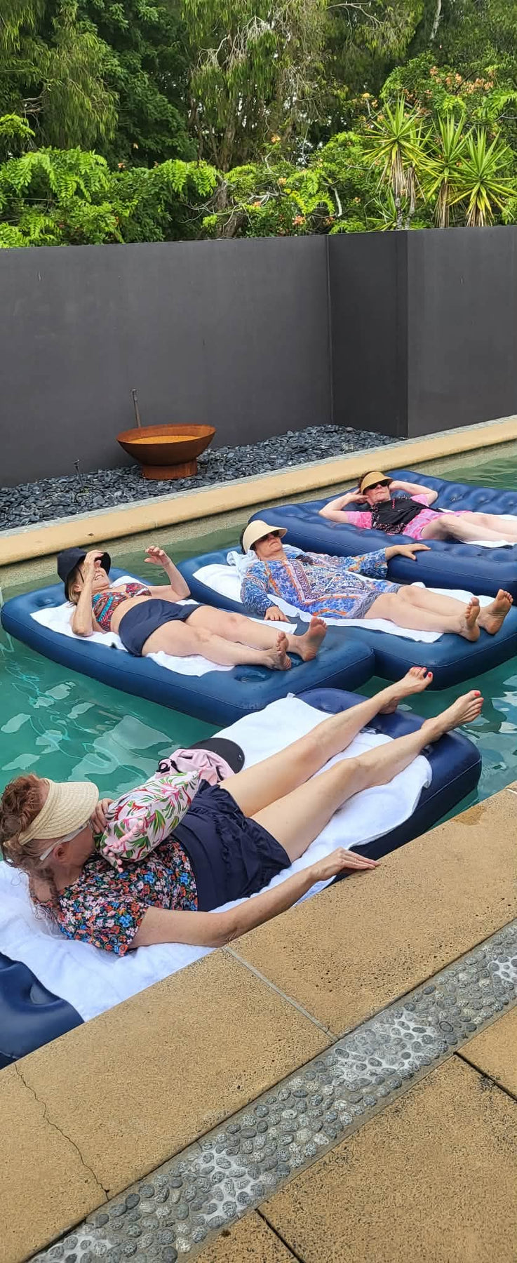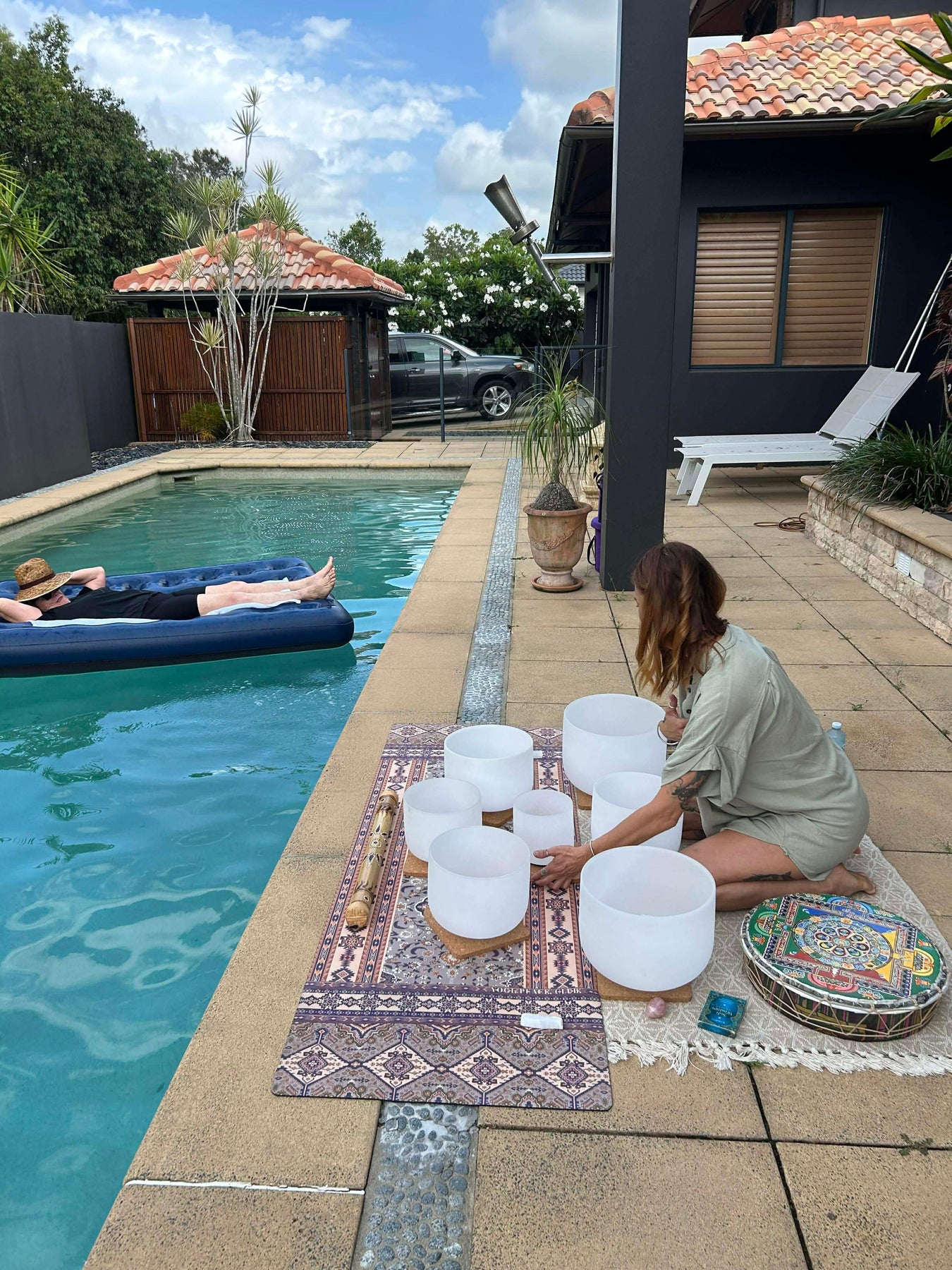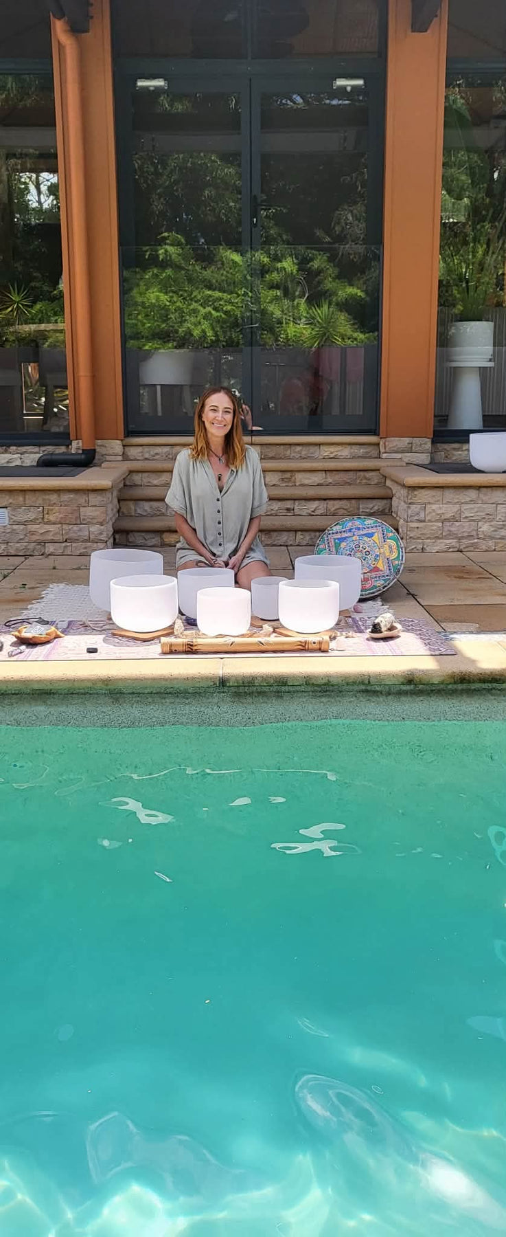 We have an amazing collaborative experience of Yin Yoga combined with Slow Flow Yoga, and an exquisite 1.5-hour Crystal Singing Bowl Sound Healing experience floating in a 19m+ Magnesium Pool lit by gas torches with lights.